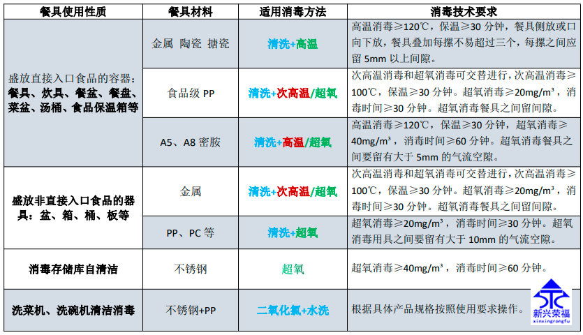 水洗后的餐具達不到衛生標準要求(即便是使用了消毒液后也不能完全殺滅細菌和病毒),還需進行干燥和消毒,目前餐飲行業多采用高溫熱風循環消毒方法,通過熱風循環可將餐具加熱到120℃以上,使餐具上殘留的細菌和病毒發生蛋白質變質而失去活性,熱風消毒庫操作簡單,對餐具擺放要求相對較低,消毒效率高,適合金屬、陶瓷類餐具的高溫消毒。 但是也會有些餐具不適合高溫消毒,高溫情況下發生了嚴重變形甚至是熔化,因此新興榮福消毒庫增加了超氧消毒的功能。